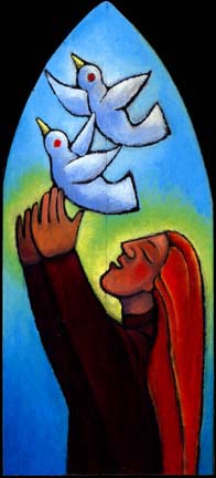Oils on Wood, Gold Leaf Original was 14" x 6"