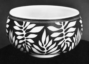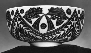 bending over fragile pots scraping intricate designs in underderglazes