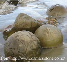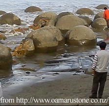 on Moeraki Bay. On the beach are some pretty awesome round boulders,